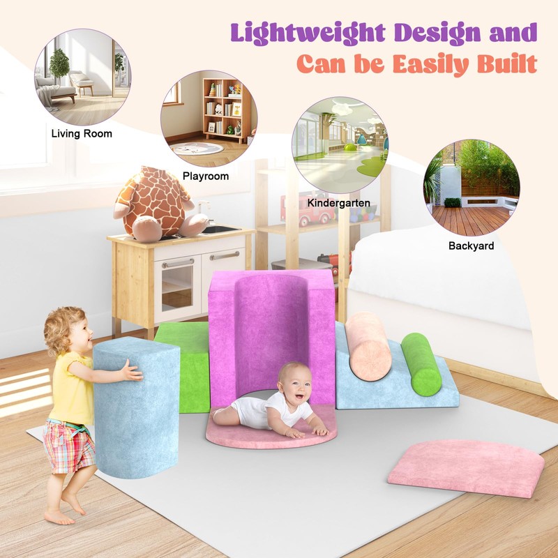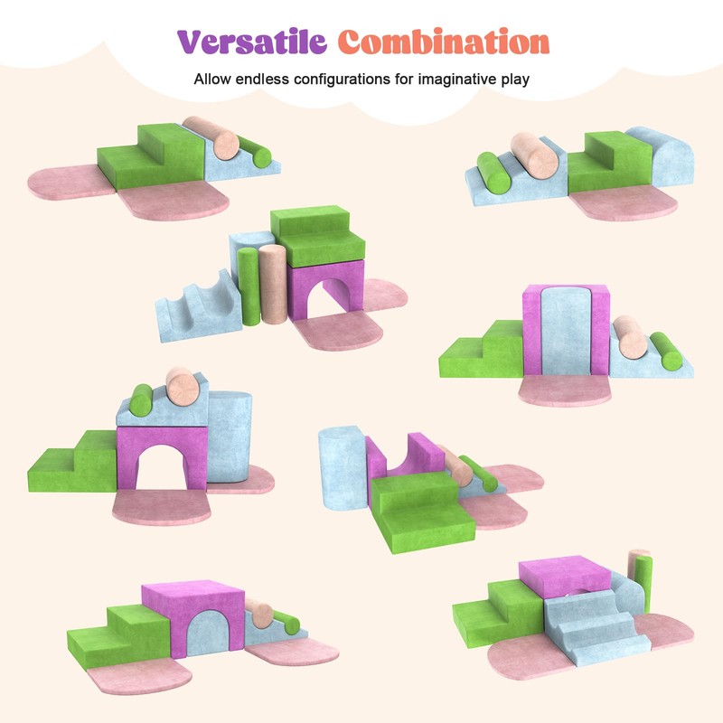 - Safe and Soft: Made from high-density foam, our climbing blocks provide a soft landing and cushioned support, ensuring your child's safety as they climb, stack, and explore; crystal velvet surface is soft and tough, anti-slip and no sharp edge design, protecting your baby's delicate skin and giving moms peace of mind