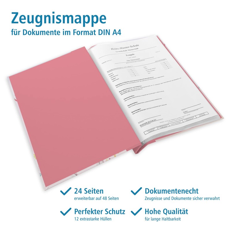 - itenga Certificate storage, format: DIN A4, sleeves: 12 transparent document pockets, indelible, dimensions: approx. 24 x 31 x 1.5 cm