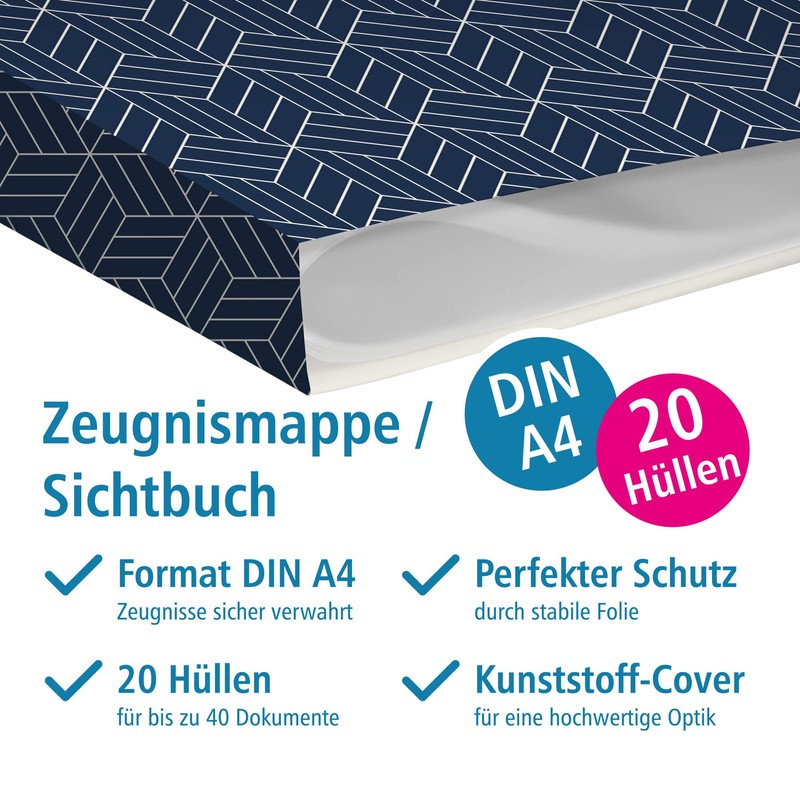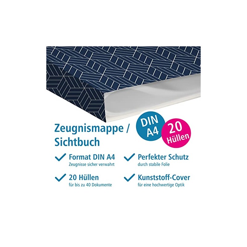 itenga Certificate Folder with Motif, A4 Sturdy Document Folder, Display Book for Certificates - 20 Sturdy Pockets - for Children, Teenagers, Students, Girls, Boys, Abstract Geometry Motif