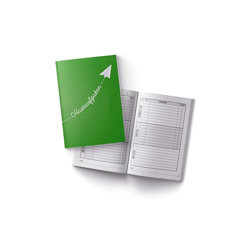 itenga Homework Book Paper Plane Green DIN A5 96 Pages School Supplies My Homework for Community School Gymnasium