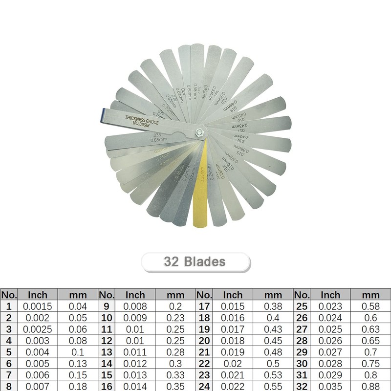 • Coming with a 12mm spark plug gap tool and a 32 blades feeler gauge (0.04-0.88mm/0.0016”-0.035”)