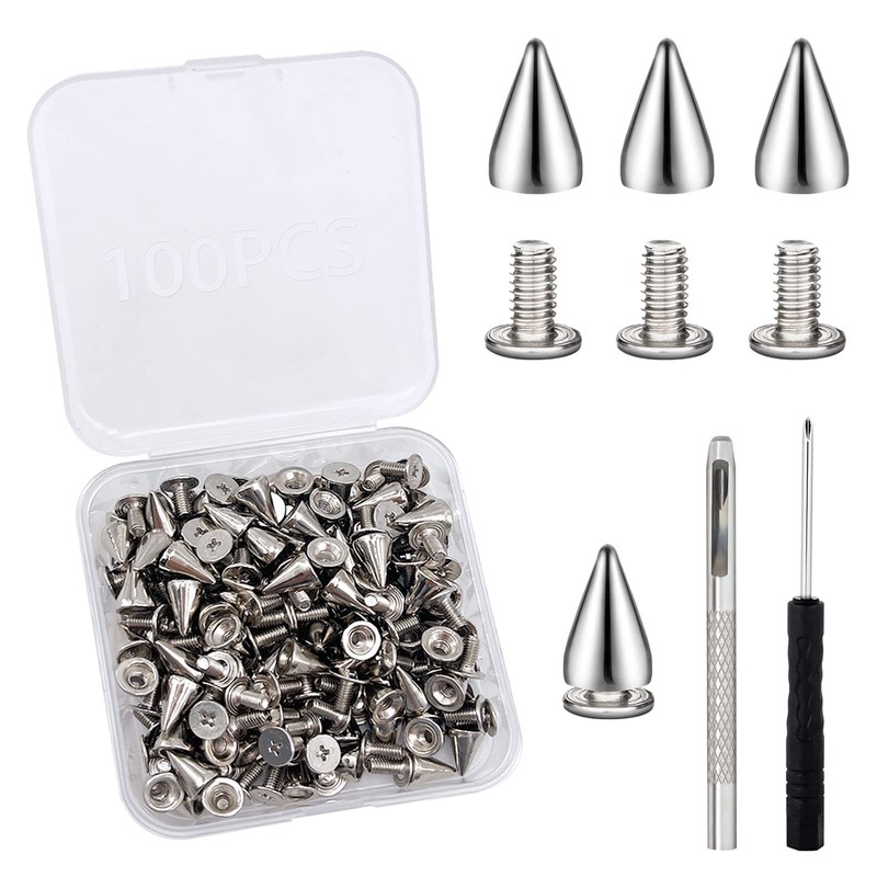 - 【Easy to Use】 Each taper-pointed cone spike studs is equipped with a screw, which can be easily fixed on the fabric and is easy to operate. You only need to determine the location to be installed, then drill a small hole, fix the tip of the tip with a screwdriver, and then tighten the punk rivet screw.