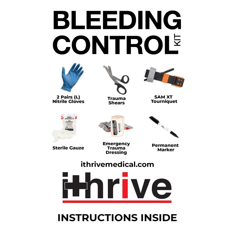 iThrive Medical - Stop The Bleed Trauma Kit - Bleeding Control Kit with SAM XT Tourniquet & Trauma Shears - Emergency First Aid Kit for Massive Bleeding (7 Pieces)