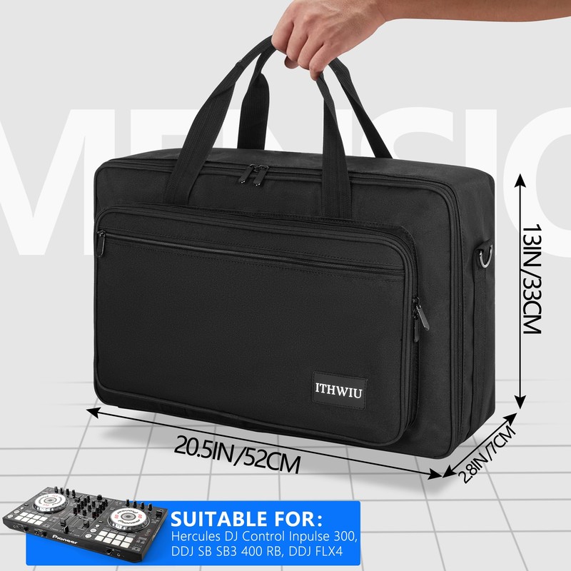 ITHWIU Padded DJ Controller Case for DDJ FLX4, DDJ SB SB3 400 RB, Hercules DJ Control Inpulse 300, L 20.5 X W 12.5 X H 2.75 inches, Black