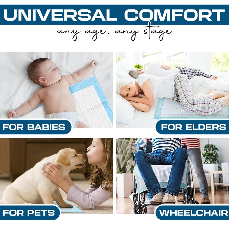 - ✔️Super-Absorbent - Our bed pads are designed with polymer layers that absorbs liquid, urine, or leaks and locks away odors and wetness.