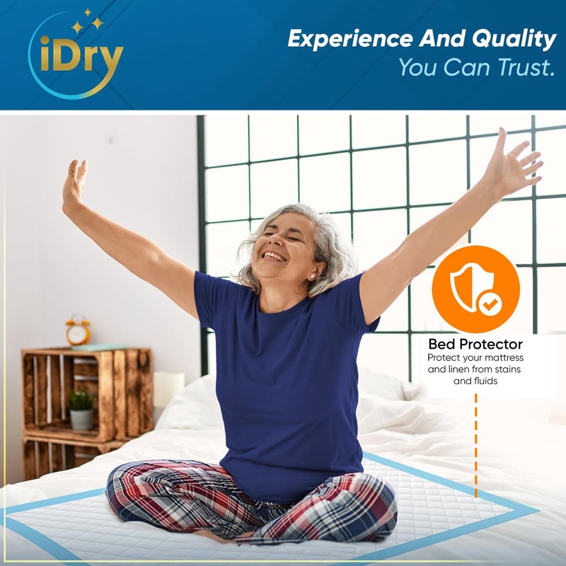 - ✔️Premium Quilted - iDry under pads have premium diamond quilt to help in the easy absorption of uncontrolled bladder or urinary problems.