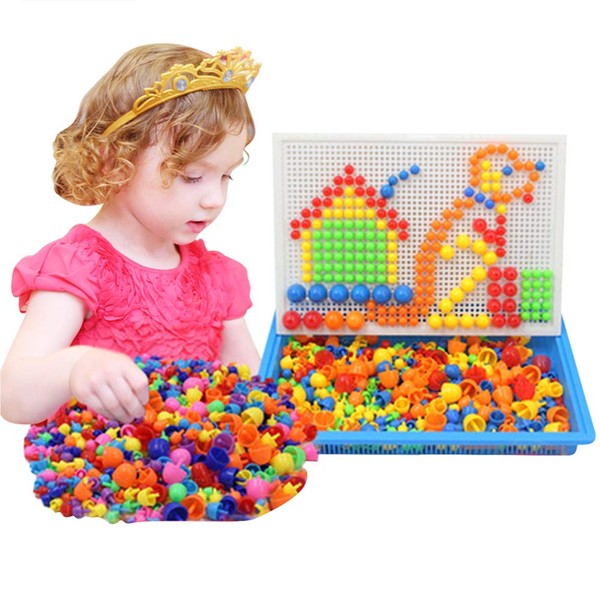 - The jigsaw puzzle comes with 592pcs mix colours and sizes mushroom nails, 1 x storage basket with pegboard. It is a lot of fun for kids to DIY many figures with those cute mushroom nails such as house, animals, plats, flowers, iron tower, simple thing common see in life