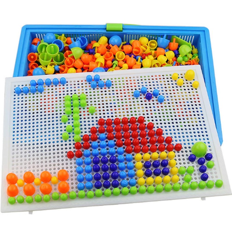 ITODA 592 PCS Mushroom Nails Jigsaw Puzzle Board Mosaic Toys Pegboard Educational Intelligence Building Blocks Puzzle Toys Assorted Colour Creative DIY Christmas Birthday Gift for Kids