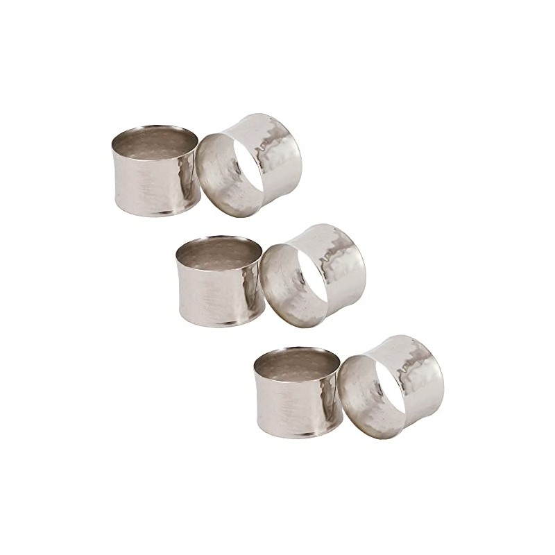 ITOS365 Handmade Round Hammered Silver Napkin Rings Holder for Dinning Table Parties Everyday, Set of 6