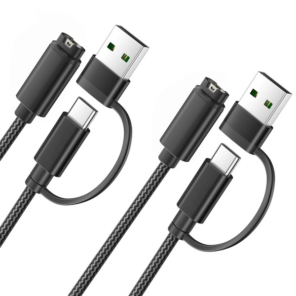 Itramax 2-in-1 Charging Cable for Garmin 4FT 2Pack,Charging Cord for Garmin Fenix 7X 7S 6X 6S 5 Plus,Forerunner 965 955 570 265 255,Instinct 3 2,Quatix 8 7 6,Vivomove 3 3S,Swim 2,Vivosmart 5 - Black