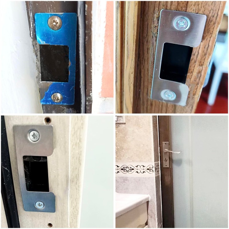 - PRACTICAL AND RELIABLE: These adjustable strike plates are used to eliminate friction, venting, and misalignment with the latch tabs, preventing the latch from catching or jamming in the hole. They will serve you for a long time.