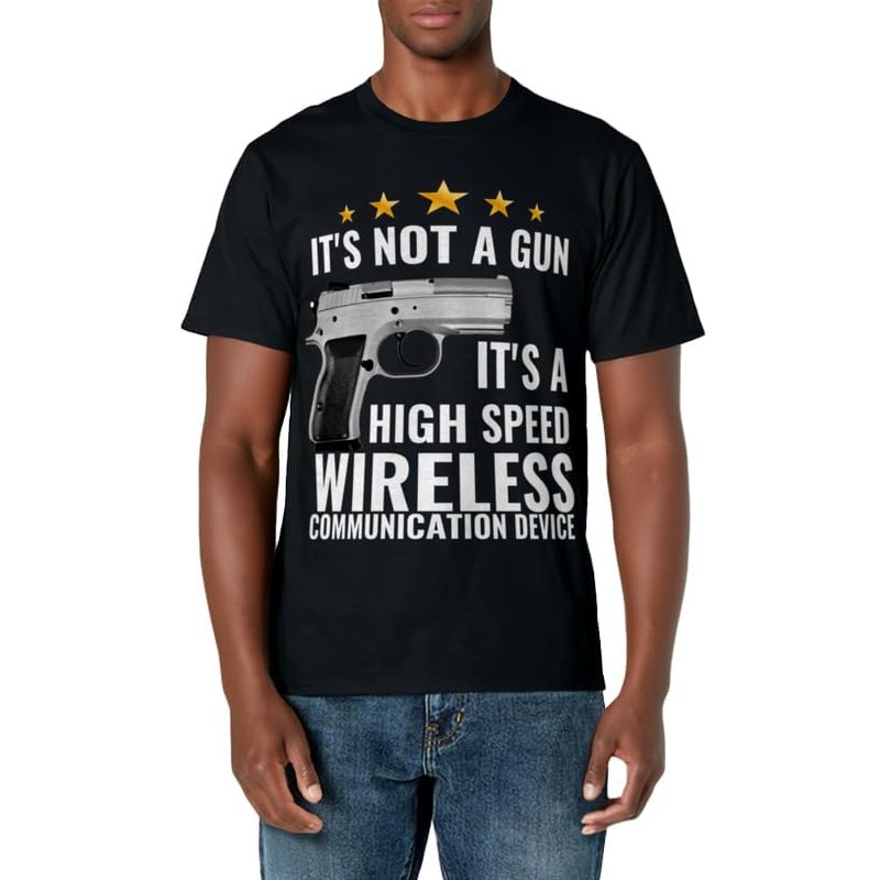 - its not a gun its a high speed wireless communication device, Funny gun Saying, guns, birthday gift, humor, american patriots, fun, sarcasm, gun meme, sarcastic, funny quote, funny jokes, happiness, happy, family, funny family gift, guns lovers, pistol,