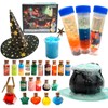- Potion Kit for kids - The potion kit craft include wearable wizard hat, crucible, magic spell book, fairy dust, and blank label magic sticker. Designed as an art and craft mystery box kit, offering unique potion making bottles and all essential magic mix suppliements