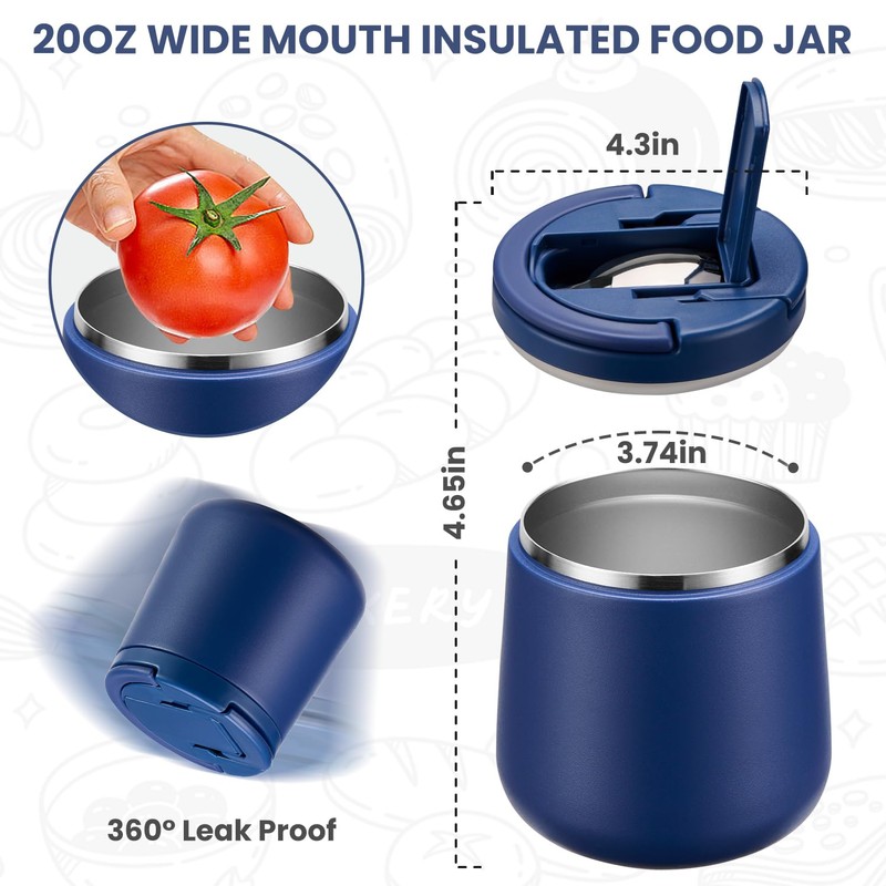 - Lid with buckle structure: Our thermal containers for food are made with a ziplock construction, simply pull the handle up 90° to open the lid, this is very child-friendly, so even small children's hands can easily open it. It also has a carry handle so your child can carry it easily.