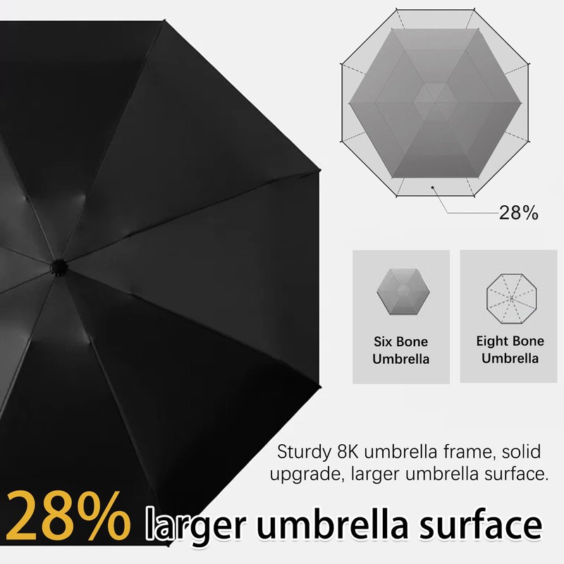 - Eight bone design: the travel umbrella is equipped with an eight-link frame made of an alloy skeleton and a durable metal shaft, which increases overall stability and wind resistance