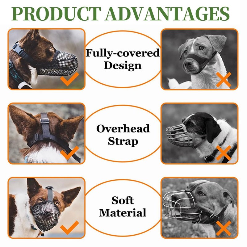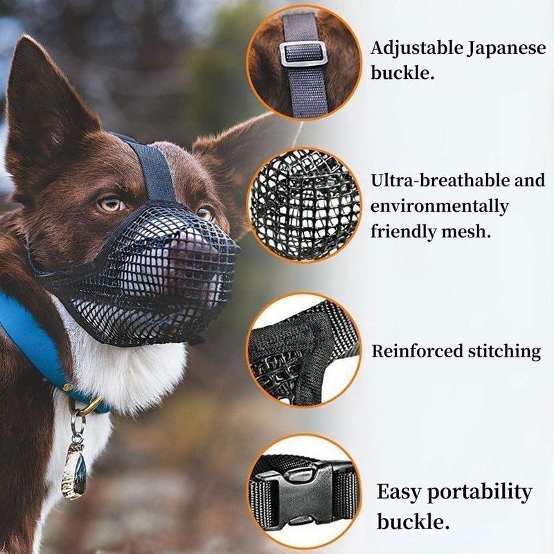Dog muzzle: This dog muzzle is made of super breathable mesh fabric, which has good breathability for dogs. The dog mouthpiece mesh supports dog watering. Lightweight and stress-free for dogs to wear, it is very comfortable, and the dog is not uncomfortable.