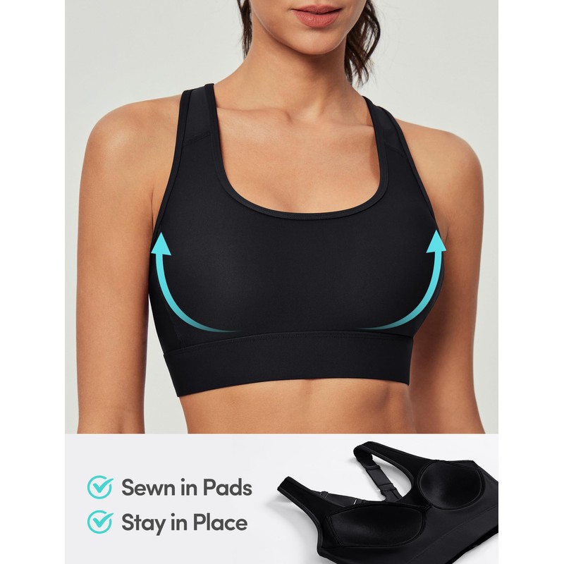 IUGA High Impact Sports Bras for Women High Support Racerback Sports Bra with Sewn-in Pads Adjustable Straps Ink Black