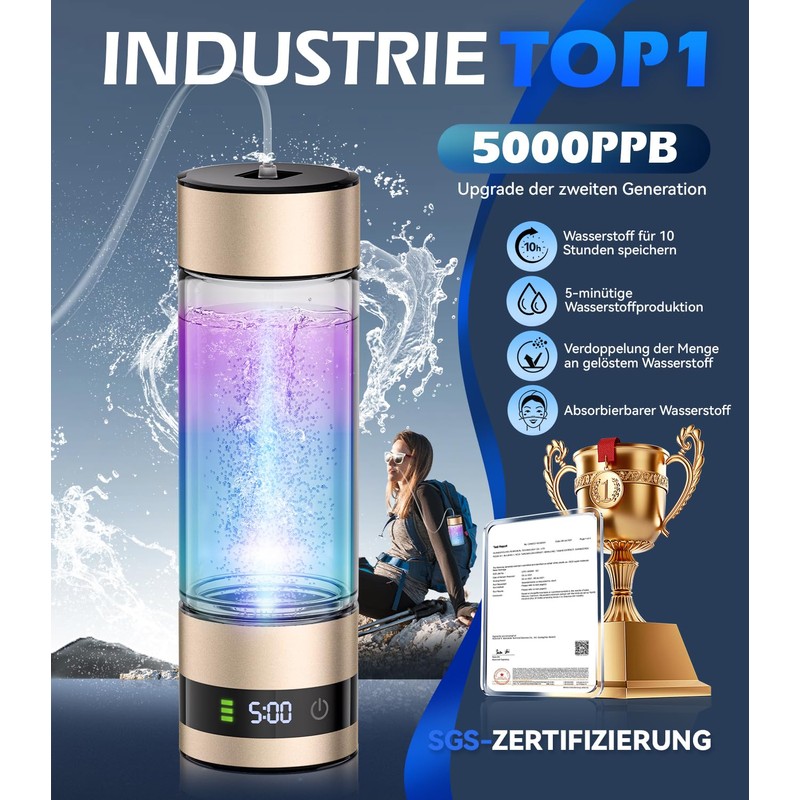 - 【Hydrogen Content Up to 99.99%】Our hydrogen-rich water bottles can generate hydrogen-rich water with a purity of more than 99.99%, effectively removing impurities and pollutants, and retaining the purity and sweetness of natural water. And with continued use, the hydrogen-rich generation efficiency remains industry-leading, ensuring that you can enjoy the best hydrogen-rich effect every time you drink water.