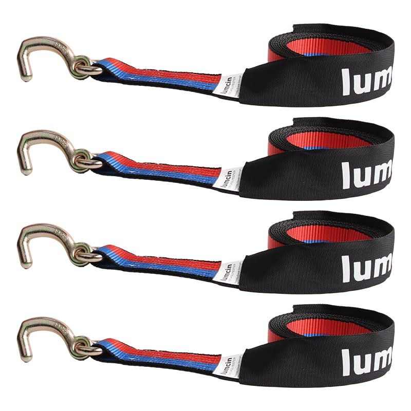 Iumcin 2" x 12‘ Winch Straps with 5/16 J-Hooks – 4 Pack,Heavy Duty Tie Down Straps for Trailers, Trucks, ATVs, Cargo Securing