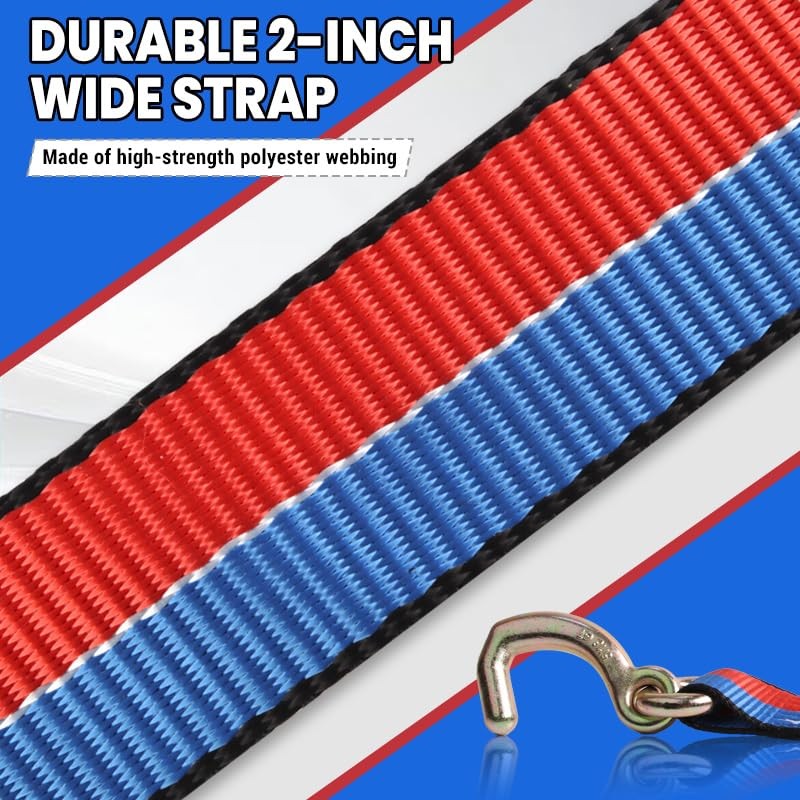 - 【High quality polyester fiber】Truck straps are made of wear-resistant polyester fiber, which will not absorb water, shrink or stretch, and can effectively resist harsh weather conditions, ensuring long-term use and maintaining high efficiency performance