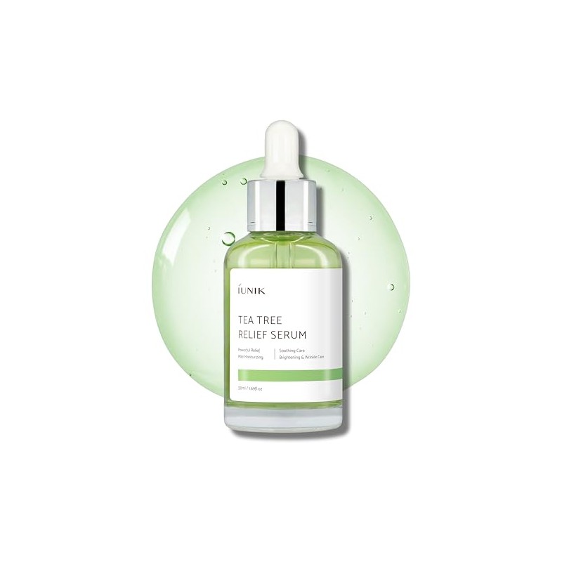 IUNIK Suero facial natural para alivio del rbol de t, 1.69 onzas lquidas, piel transparente, suero vegano, propenso al acn, piel sensible a la roscea