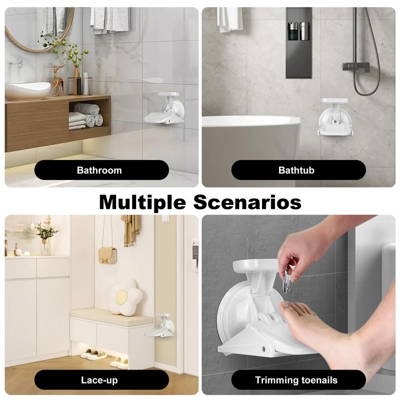 - Easy Installation:Installation is a breeze. Featuring durable ABS material for long-lasting use, our shower foot rest is easily mounted with simple steps and can be removed effortlessly by pulling the small tail on the suction cup's bottom