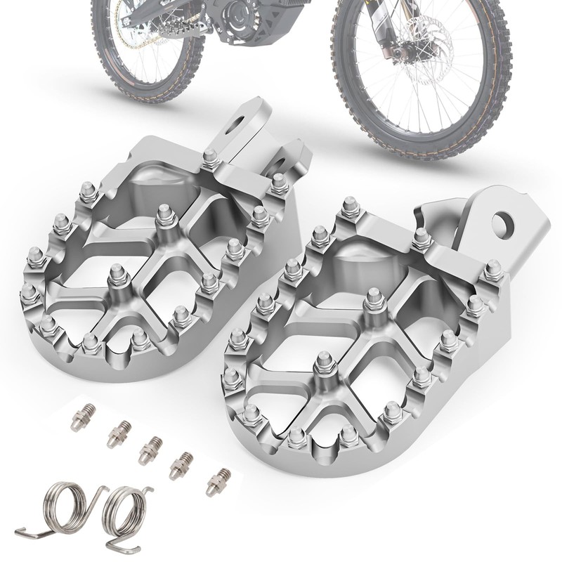 - WIDER & MORE SECURE – The Sur-Ron footpegs feature an expanded platform compared to stock, along with 17 strategically placed anti-skid spikes for superior grip. Enjoy a more stable, comfortable footing and enhanced control for a safer ride.