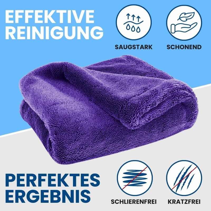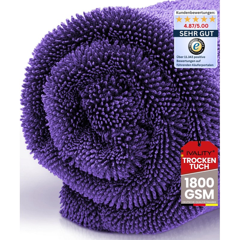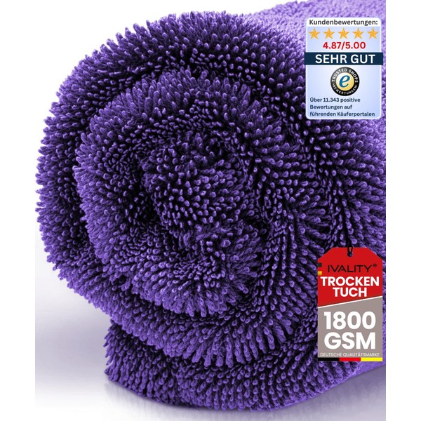 Ivality® Car Drying Towel XXL 40 x 60 cm Ultra Absorbent 1800 GSM Motorcycle Twisted Towel Microfibre Cloth - Lint-Free & Paint-Gentle Microfibre Cloth Car Care - Purple