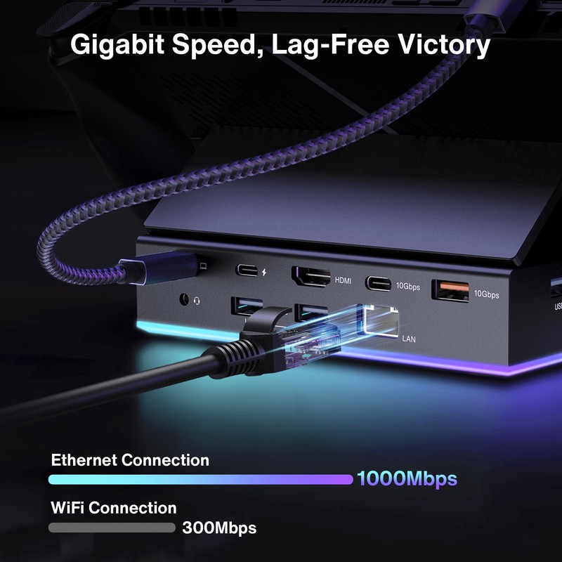 - 【Full Charging Speed】Supporting up to 100W power delivery, this docking station ensures your Type-C game device charges at maximum speed. Note: Steam Deck max charging speed is 45W, ROG Ally is 65W and Legion Go reaches 85W