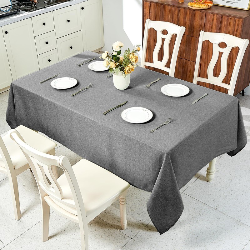 IVAPUPU Textured Linen Table Cloth for Rectangle Table - Grey Tablecloths Rectangular Waterproof Wrinkle Free Wipeable Dining Table Cover for Spring Wedding Birthday Kitchen Decor, 52 x 70 Inch