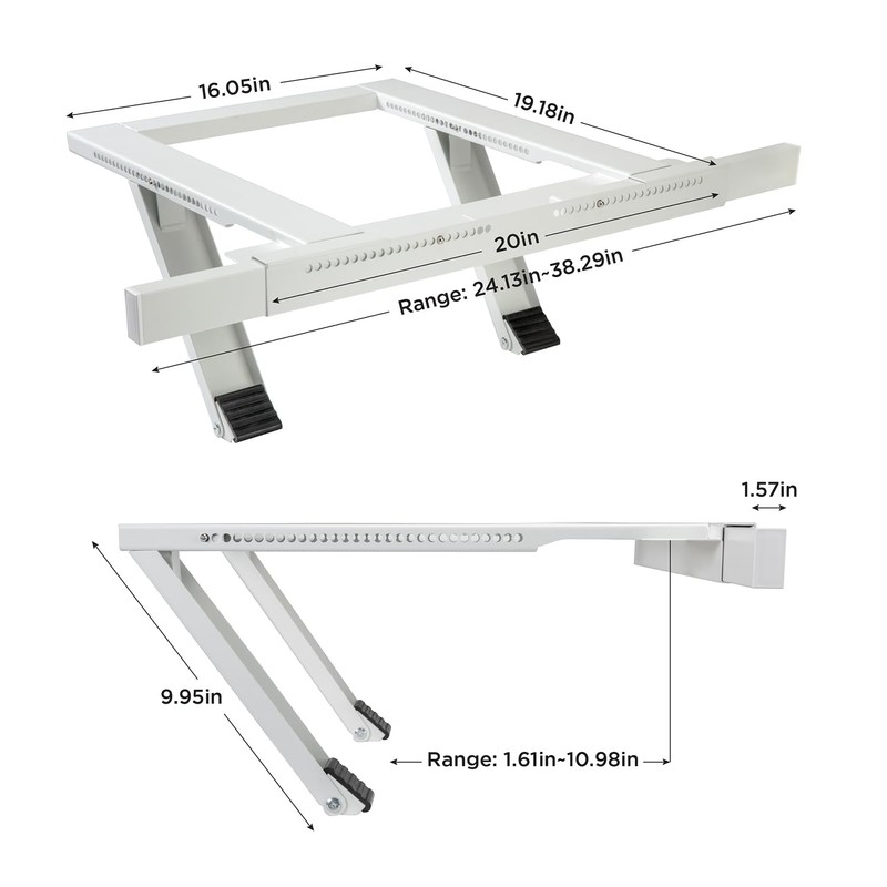 - Bracket For AC Window Unit – Easily Expands from 24” to 38” to Fit in Most Single or Double Hung Windows; Adapts to Exterior Wall Thickness of 4” to 11”