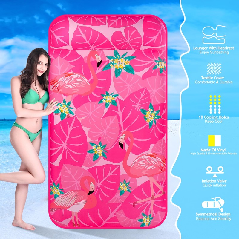 - 【UNIQUE DESIGN & ULTIMATE COMFORT】This Deluxe Oversized Pool Float with Headrest is designed with the contours of the human body in mind. The special heat dissipation design and ergonomics allow you to feel the coolness of summer while keeping your body balanced, and the high buoyancy lounger makes you feel like sunbathing on a soft bed. This pool float will bring you ultimate comfort this summer!