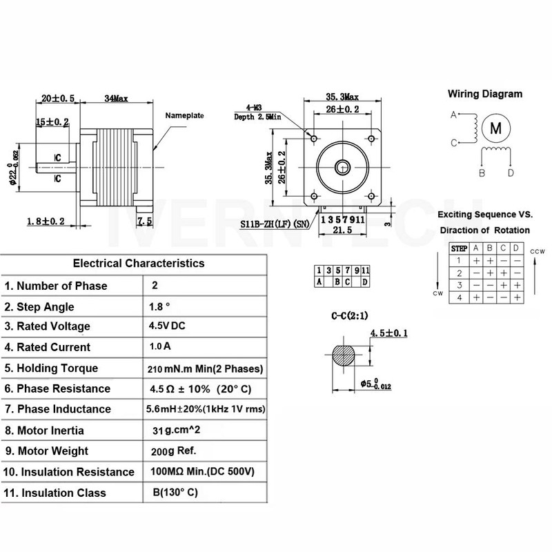 Phase Resistance: 4.5ohms±10%(20℃)