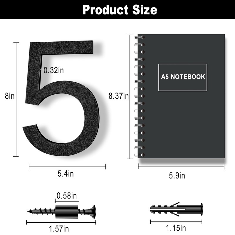 IVERRA 8 Inch Large Floating House Numbers, Black Modern House Number for Outside, Big Plastic Exterior Address Numbers for Door Wall Street (5)
