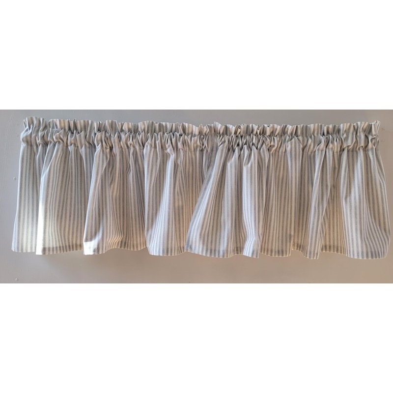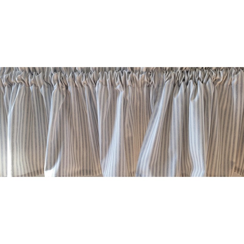 Ivory and Gray Stripe Valance Curtain, Ticking Gray and Ivory Stripe Valance Curtain (42-43 Inches Wide x 14.75 Inches Long)