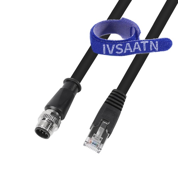 IVSAATN Ethernet M12 8- Pin A-Code RJ45 Cable for Omron Microscan QX-870 Scanner Cognex in-Sight Data Man Checker / 5m /16.4 Ft (Black)