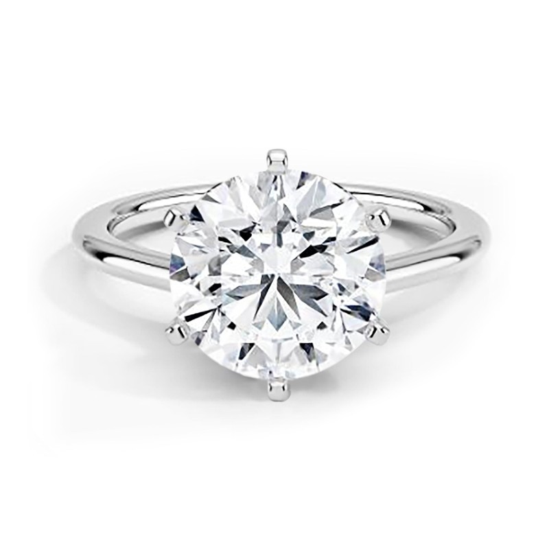 - This elegant solitaire ring features an open basket with 6-prongs which cradles the center gem. The petite band adds to the sleek, classic look of the design.