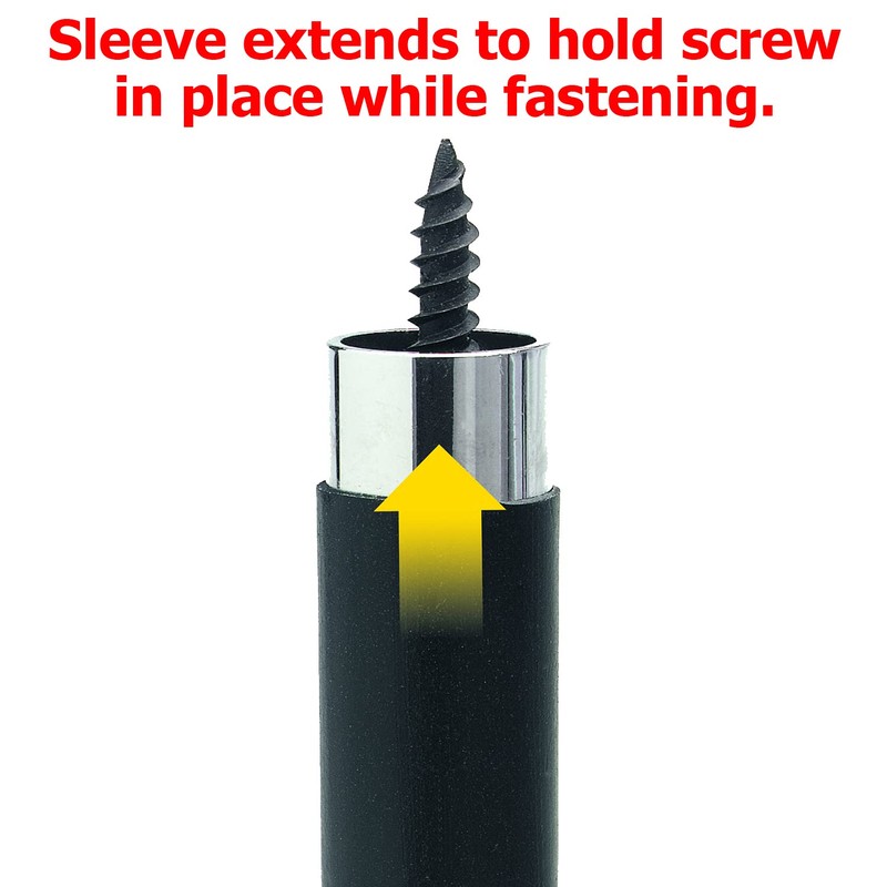 • Place the screw on the end of your bit and slide the metal extending sleeve over the screw