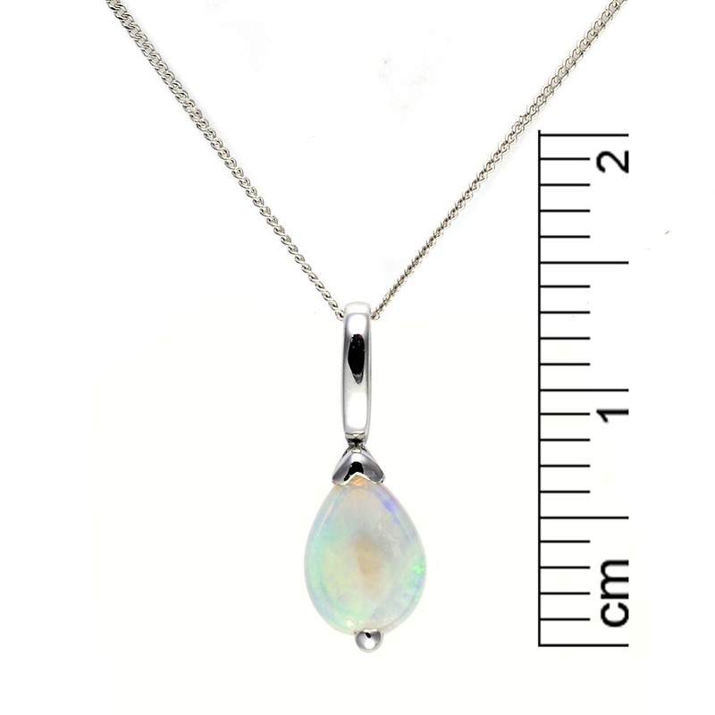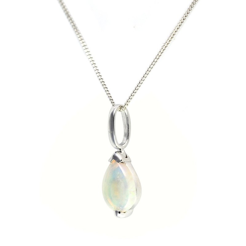- Small but sweet! This delicate 9ct White Gold pendant is ideal if you prefer subtle luxury. Set with a beautiful creamy, pear cut opal which is simply set at the bottom with a single claw and at the top with a "V" setting.