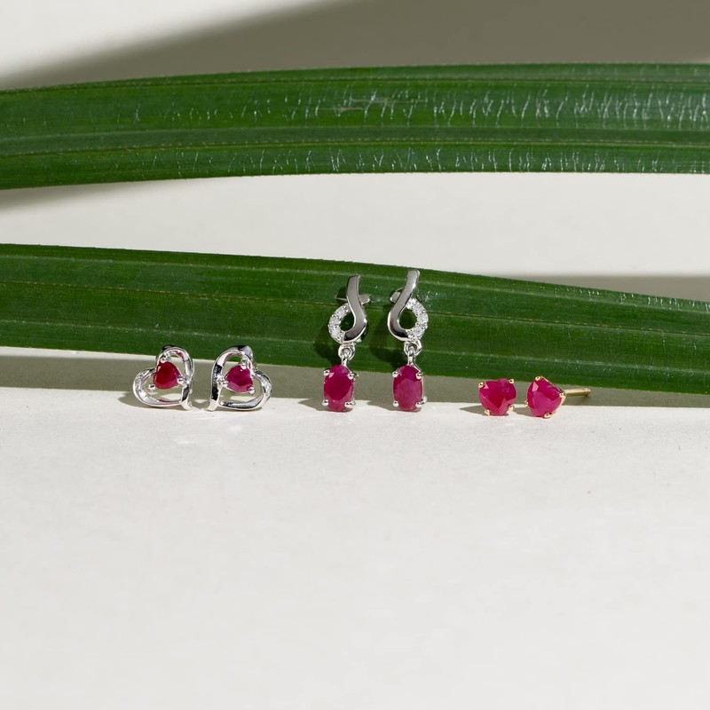 - Pretty Ruby heart stud earrings set in 9ct yellow gold from Ivy Gems. These charming earrings are the perfect choice for so many occasions – an ideal gift for Valentine’s day, graduation, a special anniversary, for a bride, 18th & 21st birthdays, as a love token or simply as a preset to make somebody feel special.