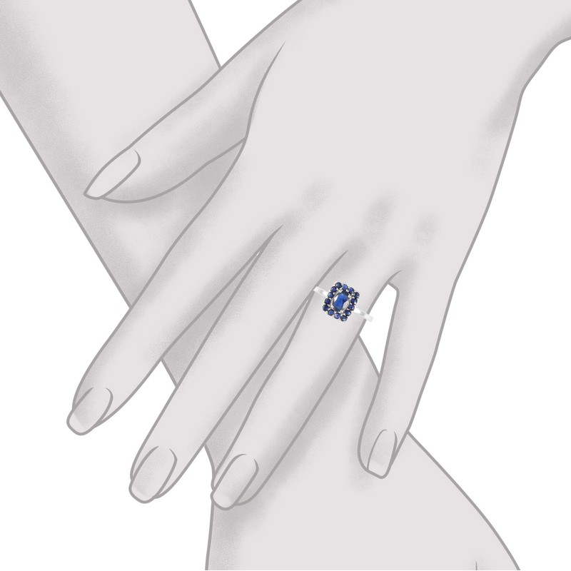 - Simple and elegant, this sweet ring features an oval cut blue sapphire and 14 round cut sapphire gemstones. The beauty of this ring is in its simplicity.