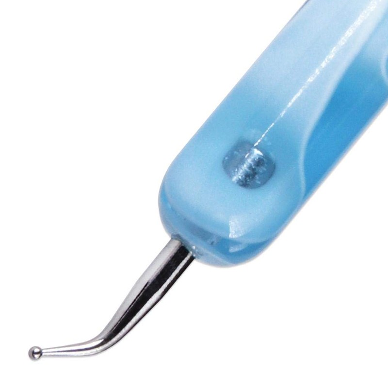 - [DESIGN] Make dots or create fine lines with the 2-Way Kolinsky Brush and an Angled Dotting tool with a Blue and White marbled acrylic handle