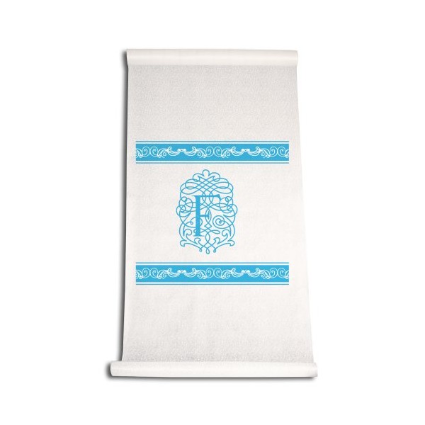 Ivy Lane Design 90-Feet by 36-Inch Aisle Runner, Fancy Font Letter F, White with Blue