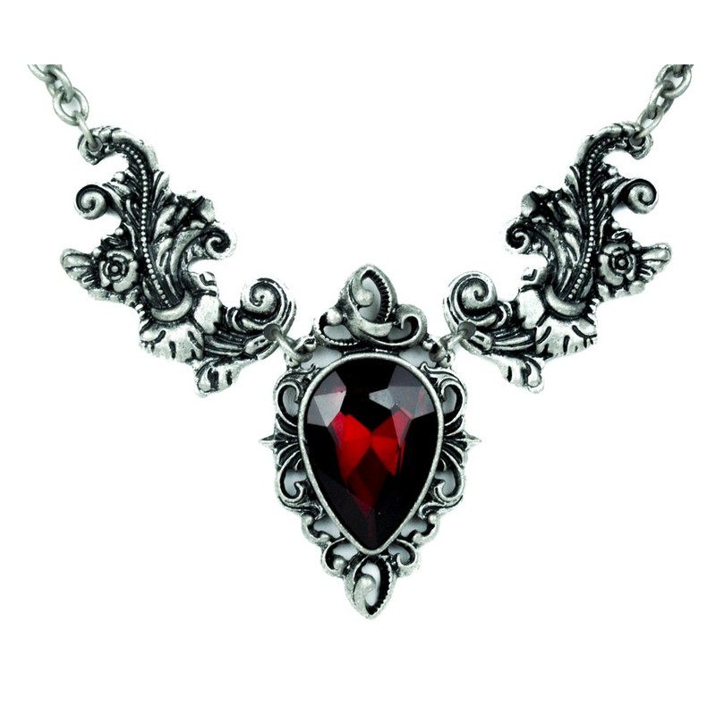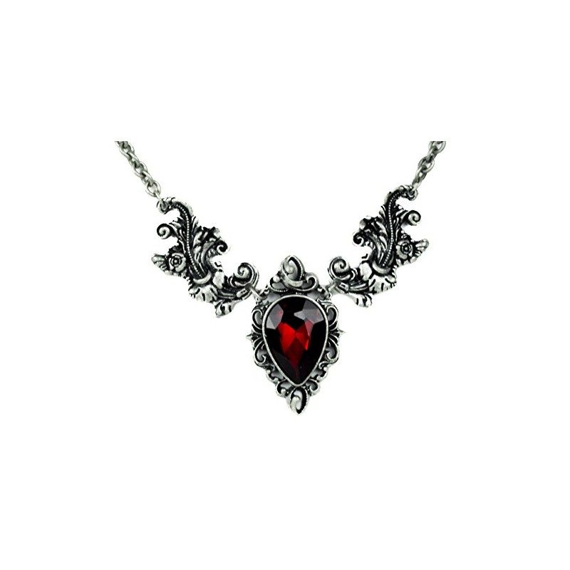 - Ivy Leaf Red Stone Gothic Victorian Style Necklace