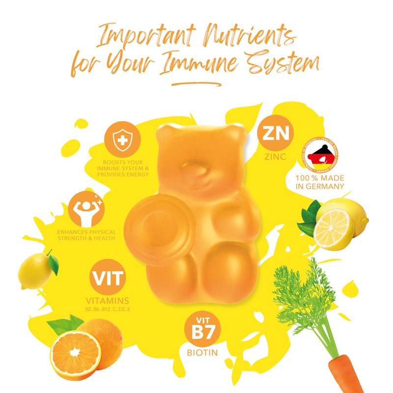IvyBears Boost Immune Gummies | Daily Immune Support | Vitamins B6, E, D2, B2, B12, C & Biotin | EU Certified Health Supplement - 60 Count