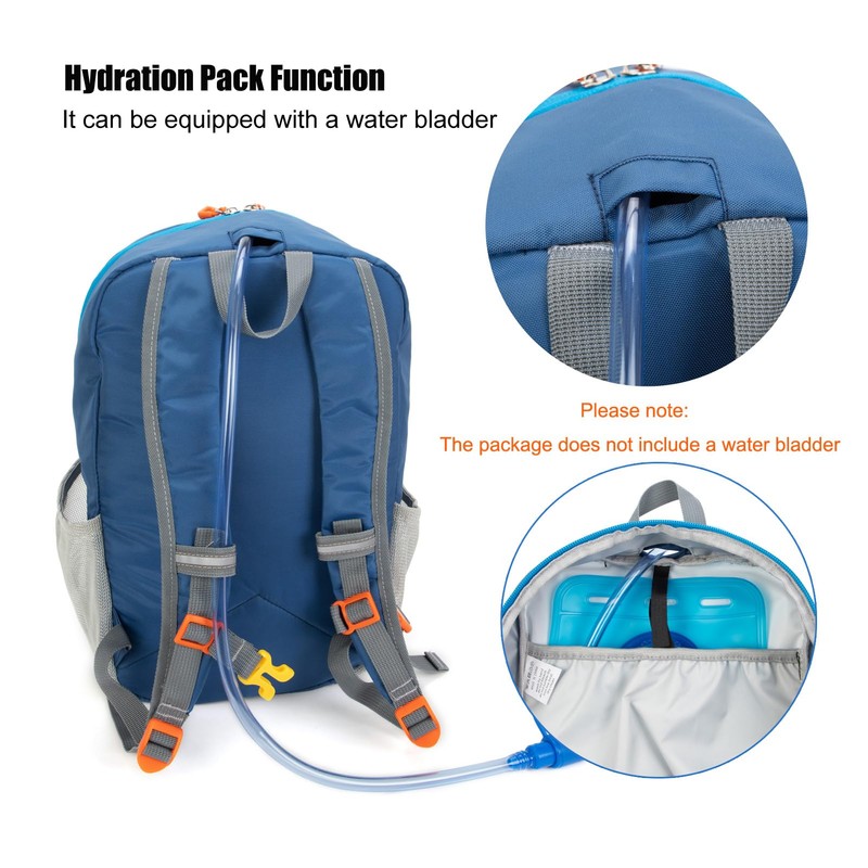- Made of water-resistant polyester fabric. Lightweight and firm enough. Design for kids 3+ years old as their own travel backpack, also for adults who need a small pack