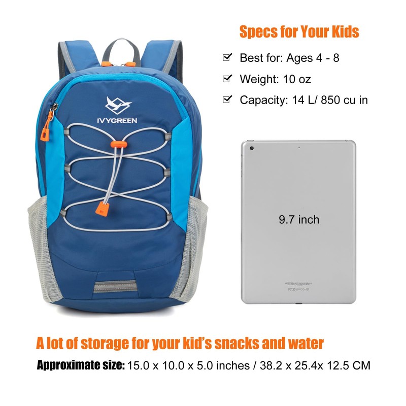 - Small size:15.0 inches x 10.0 inches x 5.0 inches. Capacity: 14L. Fit little kids to pack more needs in adventure