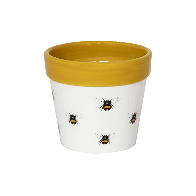Ivyline Cacti Planter Bumble Bee H10cm D10Cm, White/Mustard