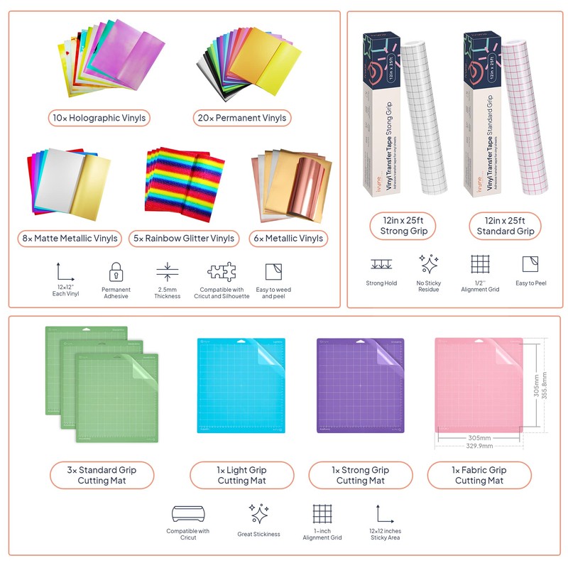 - Craft with Lasting Impressions - Choose from an array of colors and finishes, including Matte, Holographic, Metallic, Gold, Silver, and Glitter Rainbow. Our premium quality, fade, peel, and crack-resistant Permanent Vinyl ensures your creations stand the test of time