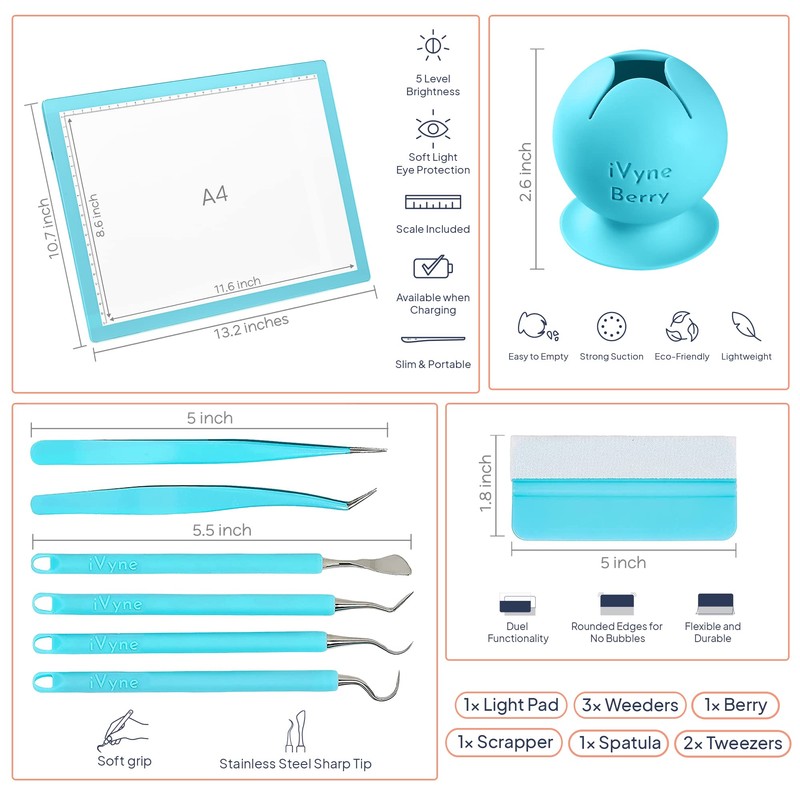 - Illuminate Your Crafting Experience - Our rechargeable light pad features five brightness modes, making weeding a breeze even for beginners. The 8-piece weeding tool set allows for precision and ease of use, further enhancing your crafting experience